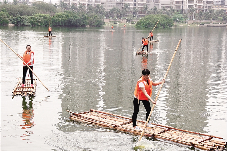 这学期开始,yl6809永利官网集团的东坡湖上经常出现一个个男女生轻盈的身影,他们撑着一支竹竿,站在竹筏上,“向青草更青处漫溯”。走近一看,是yl6809永利官网集团的老师带领学生们正在上体育课。 为了挖掘失传的黎族体育项目,yl6809永利官网集团教授宋静敏和其他老师组成了yl6809永利官网集团黎族传统体育特色教学改革研究团队。“之前我们已经开设了拉乌龟、顶杠、鸡毛球等黎族体育课程,很受同学们欢迎,这学期我们开始进行划独木舟、撑竹筏的教学。”宋静敏说。 黎族撑竹筏课受学生追捧 4月14日上午,在yl6809永利官网集团东坡湖的岸边,一个个学生们身穿橘红色的救生衣,划着竹筏依次朝湖中心划去,绕过湖心的绿色小岛,在湖岸与湖中小岛之间往返一个来回。这就是yl6809永利官网集团正在进行的黎族传统体育课——撑竹筏。 在下水前,宋静敏向岸边的36名学生讲解掌握竹筏的技巧,不断地亲身示范“划、插、撑、抽”的步骤,36名学生表现得很从容,在竹筏上划得非常稳。 “我们选课的时候只知道是黎族传统体育,上第一次课的时候才知道要下水撑舟,感觉很惊喜,下学期这门课肯定特别火爆。”来自海洋学院的符升告诉记者,最开始大家上竹筏腿都打颤,但经过不断练习,已掌握基本要领。” 记者看到教学过程中,不断有学生停下来驻足观看。“这门课看着很有意思。”一名路过的男生说。宋静敏也告诉记者,每堂课下水实践的时候,都会有外班的学生混进来。 虽然教学形式新颖,但安全问题成为宋静敏以及学校最担心的问题。宋静敏说,开课前学校体育部也做过各项评估检测,例如测量东坡湖的水深、检验上课器材的安全性等。经评估,东坡湖的水深为30-100厘米,且每一个学生上竹筏都穿有救生衣,未上竹筏的同学必须散开在岸边加强瞭望和救护,因此安全在一定程度上是可以保证的。 同时,这些黎族体育运动器材也都是由课题组的老师亲手设计和参与制作的。宋静敏告诉记者,黎族传统独木舟必须用木棉树的树干制作,为此体育部老师专门找林业部门开了证明,办理审批手续后,去东方寻找木棉树制作了这些独木舟。但最初的竹筏由于无法承受较大的重量,让老师十分为难。最后,为保证学生的安全,将两个竹筏叠加检验安全后才投入了教学。 宋静敏表示,yl6809永利官网集团从2013年起开设了黎族传统体育课,将11项黎族体育运动引入了教学课程,其中包括跳竹竿舞、打鸡毛球以及钱铃双刀等。今年终于开始了独木舟和竹筏的水上实践教学。 “黎族传说他们的祖先就是乘独木舟来到海南岛的。同时,海南岛内江河纵横,黎族在捕捞、狩猎、农耕等生产活动中,也常常遇到江河的阻隔。竹筏就成为黎族人主要的生产运输、打鱼、交通的工具。”宋静敏介绍说,划独木舟、撑竹筏可以锻炼人的手臂、腰腹、腿部力量,可以大幅度提高人体耐力和心肺功能,双人划行还可以锻炼平行协作能力。此项活动既可以娱乐身心,又可以强身健体,还是一项水上生存技能。 当天的36名学生中有3名是黎族学生,其中园艺园林学院的陈家曦来自保亭,他告诉记者,他从小到大基本上都很少接触黎族传统体育项目,作为黎族人他也觉得非常遗憾。 “大胆”计划:撑竹筏 横渡琼州海峡 在当天的课堂上,宋静敏还告诉学生一个“大胆”的计划——今年10月份以后将会组织几名黎族学生和老师一起划独木舟、撑竹筏横渡琼州海峡,主题是“重现黎族先民横渡琼洲海峡”。“这个活动还在筹备中,我们选择了最短的路线,直线距离19公里左右。”宋静敏教授告诉记者,为了保障安全,老师和学生都会提前做大量训练。为应对海中的风浪,竹筏和独木舟也要重新制作。“每年都有人游泳横渡琼州海峡,相信划独木舟、撑竹筏也可以。”