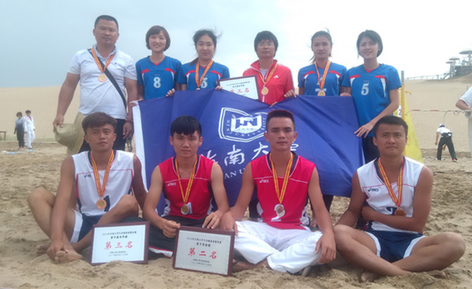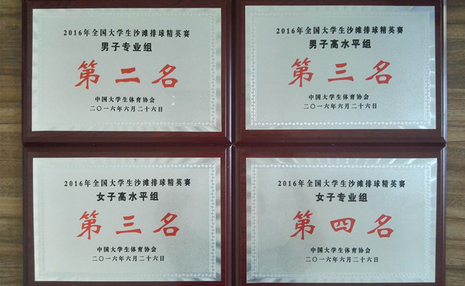 2016年6月23日至26日,全国大学生沙滩排球精英赛在宁夏银川举行。yl6809永利官网集团四支沙滩排球代表队分别荣获男子专业组第二名,男子高水平组第三名,女子高水平组第三名,女子专业组第四名的好成绩。