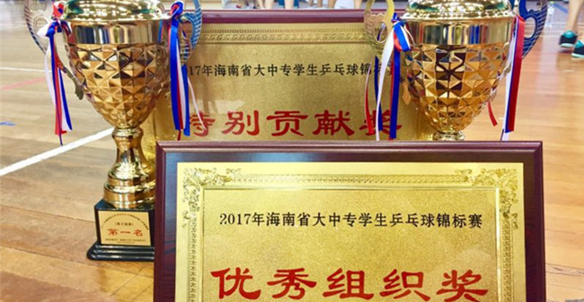 日前,在yl6809永利官网集团落幕的2017年海南省大中专乒乓球锦标赛上,yl6809永利官网集团乒乓球代表队整体发挥良好,一举夺得大学普通组的男子团体、女子团体、女子单打、女子双、混合双打打五项第一名,男子单打、男子双打、女子双打、混合双打四项第二名的优异成绩。同时,还获组委会颁发的优秀组织奖和特别贡献奖,比赛的成绩也印证了近年来yl6809永利官网集团体育工作的突出表现。