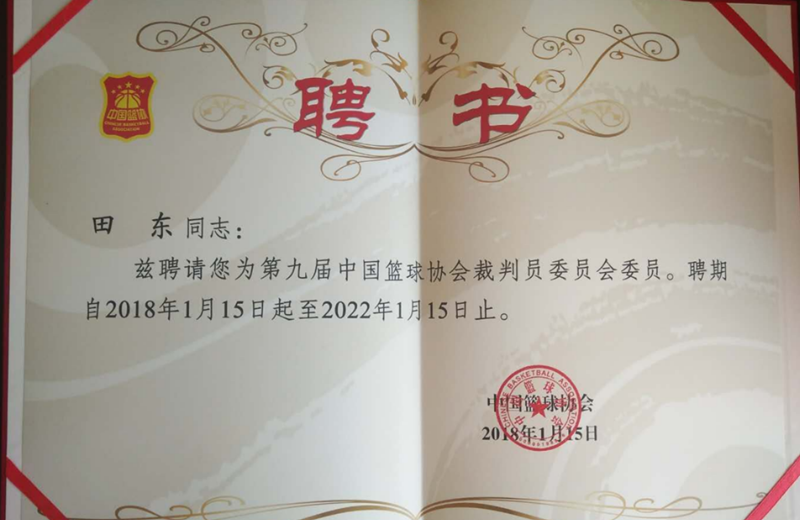 大会产生了第九届裁判委会领导机构及成员:马立军当选为中国篮球协会裁判员委员会主任;我校田东同志光荣当选为中国篮球协会裁判委员会委员,是唯一一名海南省篮球裁判员入选该委员会。田东同志作为海南省篮球协会裁判委会主任,不仅参加全国篮球赛裁判工作,还多次担任海南省篮球系列比赛的裁判长。此次当选中国篮球协会裁判委员会委员,是国家体育总局对田东同志近几年在国内大赛裁判工作及裁判管理工作的充分肯定。