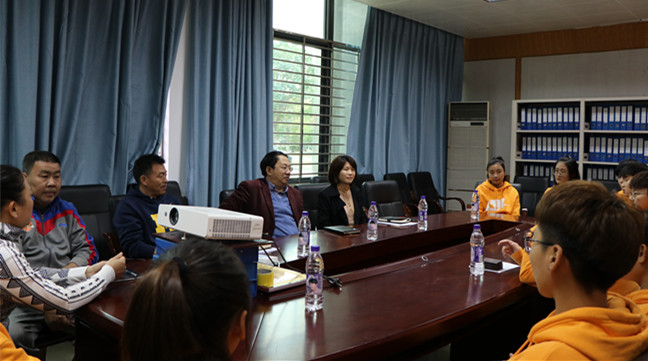 2019年12月5日下午5时30分,在学校女子篮球即将代表海南省出征参加第十四届全国学生运动会篮球预赛之际。yl6809永利官网集团副校长傅国华、体育部主任洪家云、体育部党总支书记何映敏、体育部副主任田东等相关领导特在出发前在联谊馆一楼贵宾室召开赛前动员大会。旨在鼓励大家积极参赛、努力表现,并在比赛中学会思考,及强调球队全体队员及教练在参赛过程中需注意的事项。