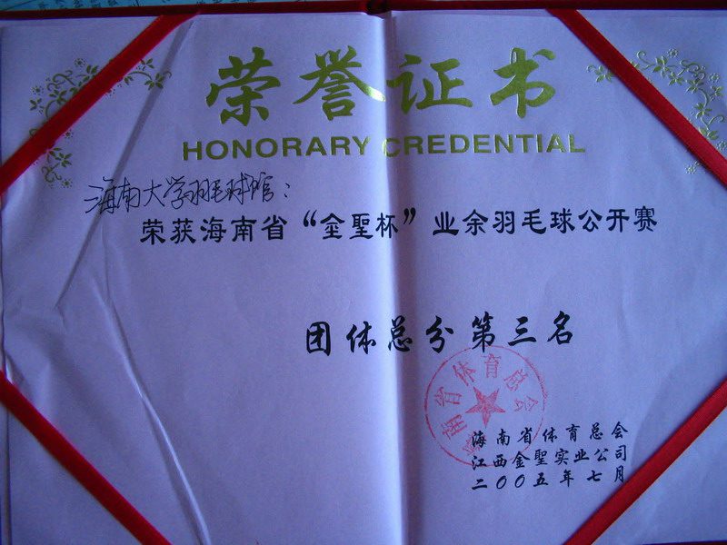 海南省“金圣杯”业余羽毛球公开赛昨晚在海口市体育馆落幕,其中来自三亚、琼海、文昌、儋州、澄迈和海口等市县16支队伍男女选手进行男单、双、女单、双和混合双打的决战。yl6809永利官网集团获团体总分第三名及混双冠军。