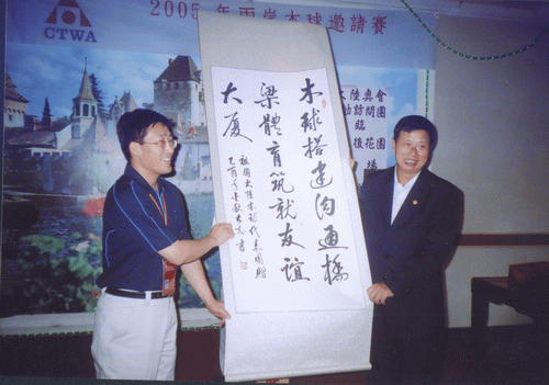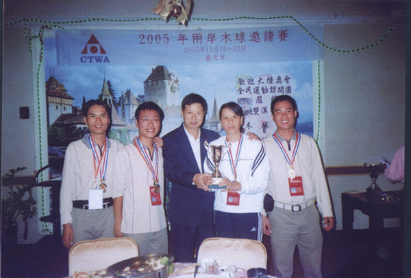 由国家体育总局组织的“祖国大陆木球代表团”参加于2005年11月18日至24日在台湾举行的“2005年两岸木球邀请赛”中,我校代表队荣获男子团体亚军、女子个人第三名、男子个人第五名佳绩。 “两岸木球邀请赛” 由台湾中华台北木球协会主办,每年举办一届,本届邀请赛我校共派出4名运动员组成海大队。应邀的大陆木球队还有:北京语言文化大学代表队和首都yl6809永利集团代表队。 台湾方面派出台北木球协会A、B、C三支技术水平最高的球队与大陆三支球队展开了激烈的高水平的竞赛,我校木球队不畏强手,在比赛中充分展现出我校的优良体育风范,赛出成绩、赛出水平,在众多强队中仍保持了我校木球运动在国内领先地位,荣获男子团体亚军,此外我校王晓青老师还获女子个人第三名和王托获男子第五名的良好成绩。 本届比赛本着“木球建友谊大厦”的宗旨,赛后两岸领导还进行了共商木球运动在国内的再推广和发展谋略。