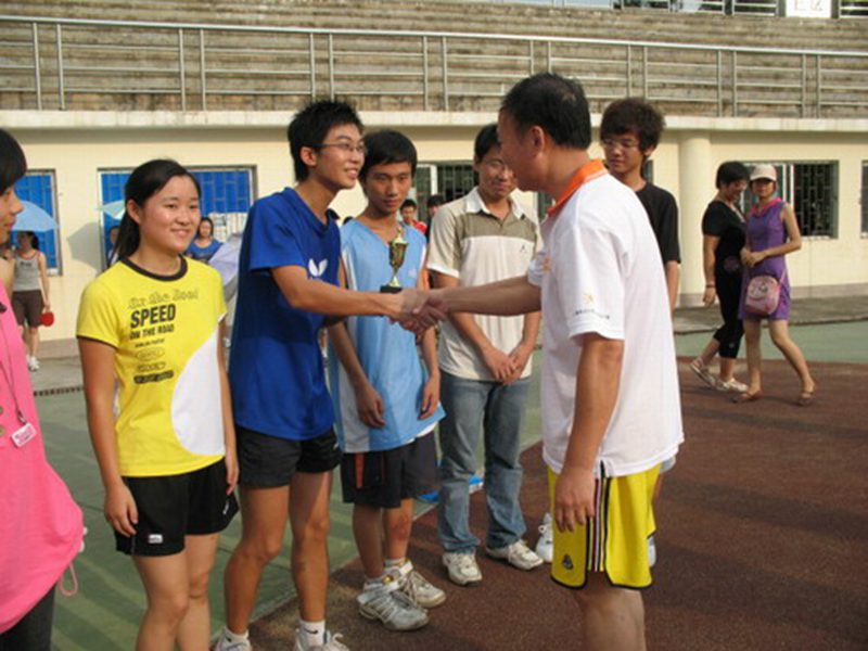 2008年5月25日,yl6809永利官网集团(海甸校区)第二届乒乓球联赛顺利落下帷幕,此次比赛约有150名运动员参加了本次比赛,前后共计进行了近300场比赛,经过激烈的争夺,最终外国语学院的苏醒获得了男子单打第一名,管理学院的王琳获得女子单打第一名,外国语学院获得了混合团体比赛的冠军。 体育部主任肖水平教授分别为团体、单打前八名的运动员颁奖。混合团体成绩:第一名:外国语学院 第二名:材料化工学院; 第三名:农学院