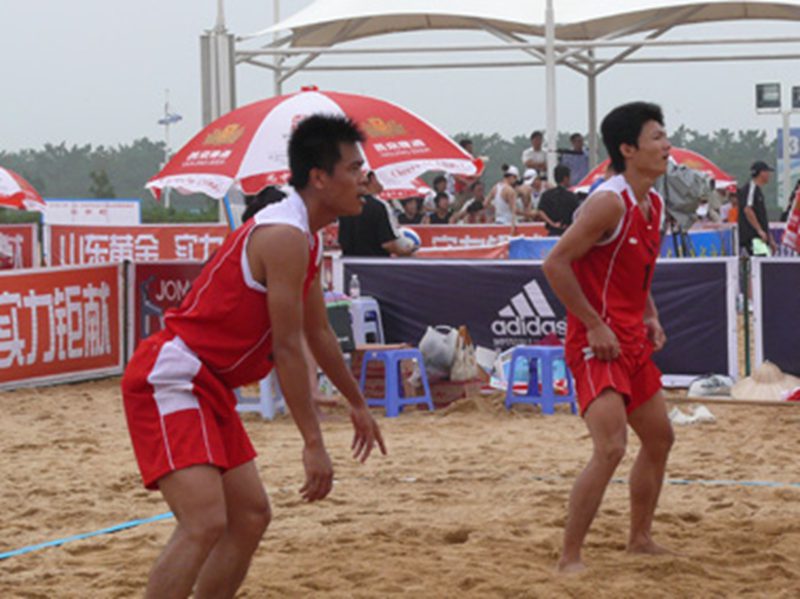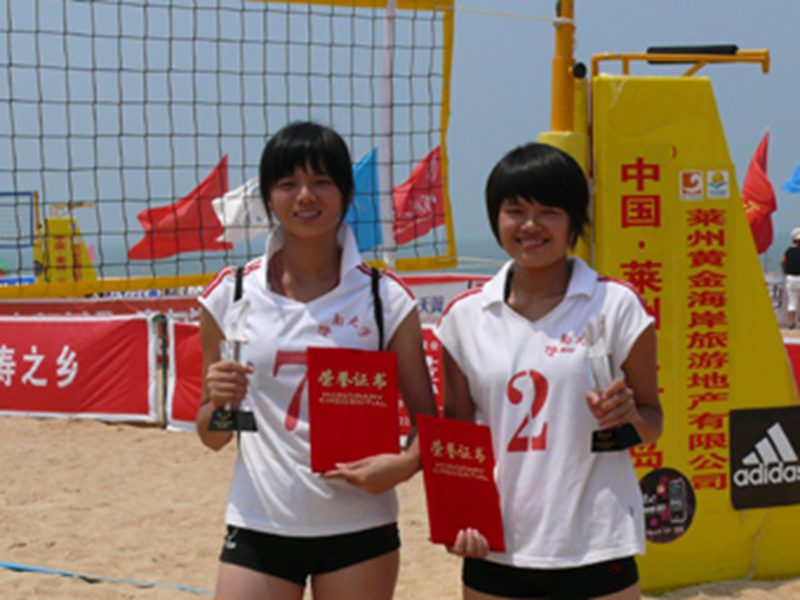 在2009年7月16日—19日,yl6809永利官网集团首次参加了在山东省莱州市举行的“中国•莱州•三山岛•黄金海岸杯”全国大学生第五届沙滩排球锦标赛,本次比赛共有来自全国38所高校的男子组25支代表队和女子普通组28支代表队。本着向其他兄弟院校虚心学习,加强交流,提高竞技水平的态度,我校派出男、女两支代表队参赛,男子队员卢芳宇、谢乙强,女子队员杨婉敏、林吉。