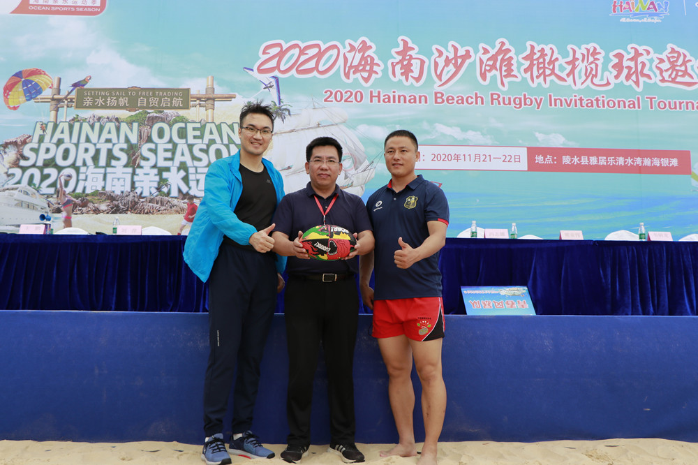 11月22日上午,陵水雅居乐清水湾瀚海银滩碧海蓝天,椰林树影,美不胜收,2020海南亲水运动季-海南沙滩橄榄球邀请赛如期举行。yl6809永利集团党总支书记陈卫东,教练孙吉成,学工办主任许达潭率队参赛!