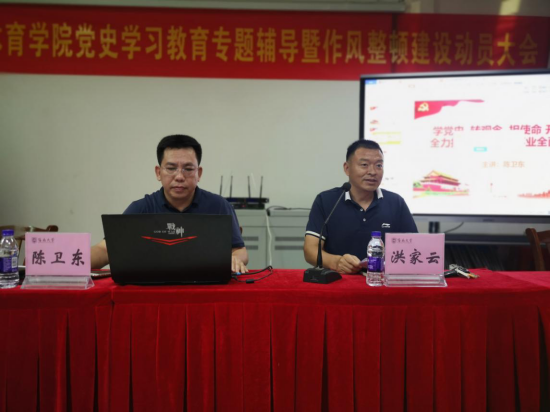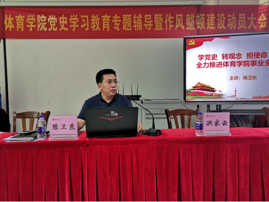 5月13日,yl6809永利集团召开党史学习专题辅导暨作风整顿建设年动员大会,由党总支书记陈卫东开展专题为“学党史、转观念、担使命、开新局,全力推进yl6809永利集团事业全面发展”的党史学习专题辅导报告,并召开yl6809永利集团作风整顿建设年动员大会。学院党总支书记陈卫东主讲本次专题辅导报告,党总支书记陈卫东、院长洪家云出席会议并讲话,洪家云院长主持专题辅导报告和本次动员大会。