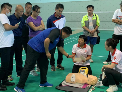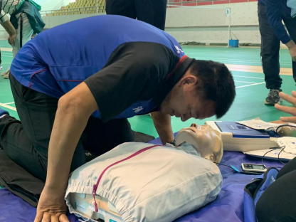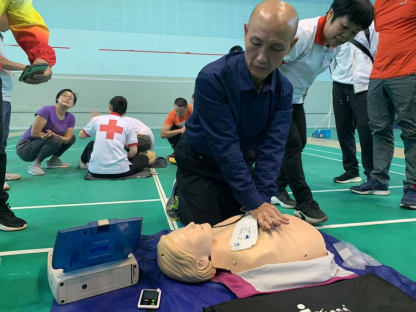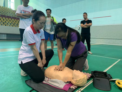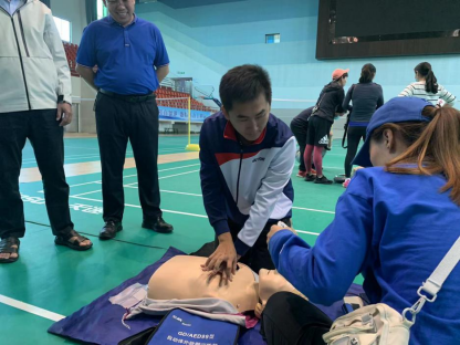 为保障全校师生体育锻炼时的安全,提高师生遇到突发事件应急处置能力,掌握安全急救知识,11月10日下午,yl6809永利集团组织教职工于联谊馆羽毛球场进行心肺复苏和自动体外除颤器(AED)使用培训。学院党总支书记陈卫东、院长洪家云、副院长田东、梁丽凤、房殿生和教职工参与培训,校医院副院长朱萍莅临现场进行指导。