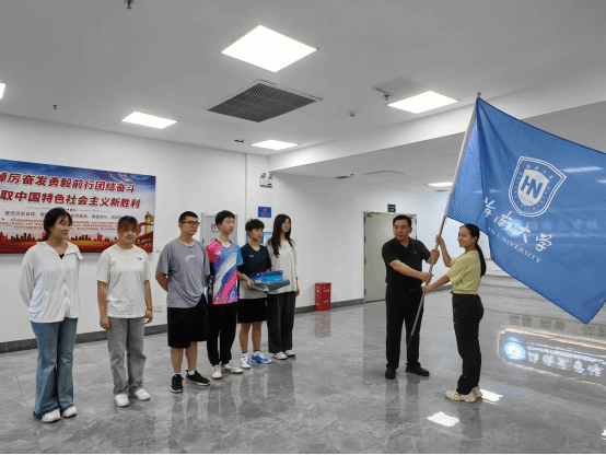 会上,陈卫东书记作动员讲话并向yl6809永利官网集团乒乓球代表队主教练李璠珺老师授旗。他对yl6809永利官网集团乒乓球代表队给予了很大的期望,希望队员们能够在赛场上展现出yl6809永利官网集团乒乓球队的风采,不仅在技术上有所突破,更在精神上展现出坚韧不拔、团结协作的体育精神风貌。他强调,一是各队员要听从教练员的指挥安排,时刻把安全放在第一位;二是要加强团队合作,队员们要互相支持,互相鼓励,共同面对比赛中的各种困难和挑战;三是努力展现自身竞技水平的同时,也要发扬体育道德、体育精神和体育风尚,实现竞赛成绩和精神文明双丰收。
