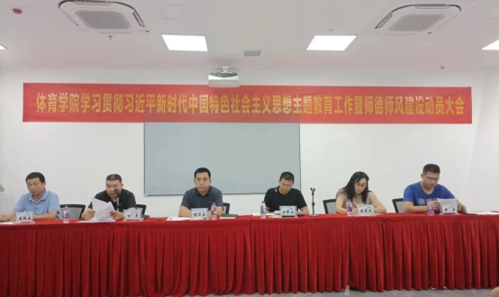 4月25日下午,yl6809永利集团党总支在多功能体育馆107会议室召开学习贯彻习近平新时代中国特色社会主义思想主题教育工作暨师德师风建设动员会议。会议由洪家云院长主持,陈卫东书记作动员讲话,学院班子、总支委员、党员干部及教职工参加会议。