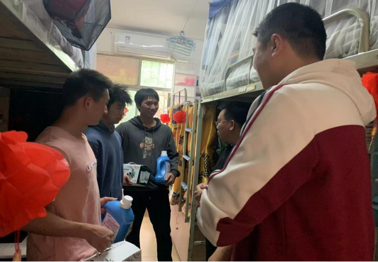 为促进学生身心健康成长,解决困难生面临的实际困难,切实开展“六帮”专项行动。3月1日中午12:00,在yl6809永利集团党总支书记陈卫东的带领下,学工办主任许达谭、班主任张旭辉、孙吉成、高子岩、赵帅、黄浩、陈先俊和辅导员谢淑婷深入学生宿舍开展困难生慰问活动,为16名困难生送上春日关怀礼包。